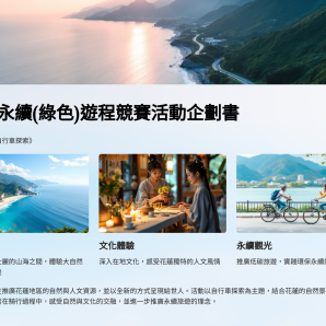 「永續花蓮三鐵樂遊」是一項融合運動挑戰、文化探索與永續理念的三天兩夜深度體驗行程。活動以花蓮著名景點...