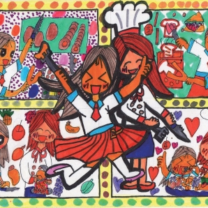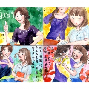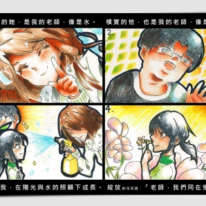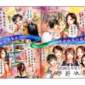 這幅畫作表達了對老師的感謝之意,運用精湛細緻的筆觸畫出了具有豐富美感,繽紛色彩的漫畫作品。