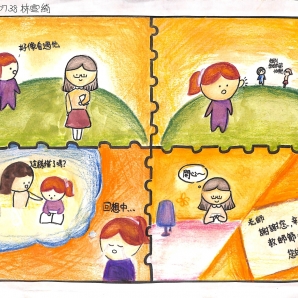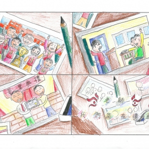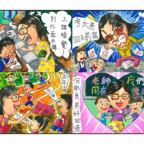 我把自己從小到大印象較深刻與老師的互動畫下來,與老師的各種趣事老師的關心把一小部分畫了上去!