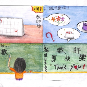 老師雖然對我們很兇,但那也是為我們好,所以不論老師怎麼罵我們,我們都很喜歡老師,祝老師教師節快樂!
