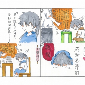 老師罵人也有它的道理在,只是我們不懂,但每位老師其實都和藹可親。所以藉由這個四格漫畫來敘說老師的辛苦...