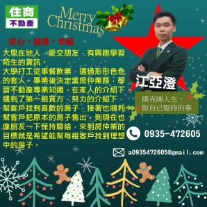 20年前在當兵的學弟鼓勵下踏入房仲業,這當中有許多酸甜苦辣,也曾經想放棄這行業。但感謝屋主的信任,以...