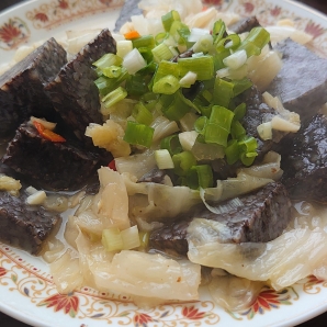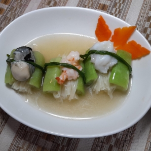 充滿澎湖海味的一道菜,小魚乾湯底搭配紫菜、花枝丸及年糕一起煮,又鮮又清甜,很適合微涼的天氣來上一碗。