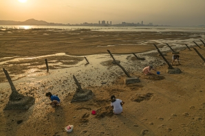 以海灘景色為主體,透過石蚵、軌條砦與遠方的廈門,隱喻三者之間錯綜複雜的關係。石蚵依附於礁石生長,看似...