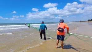 本作品以海上釣魚活動為主題,捕捉青年朋友在藍色海域與天空下的專注與互動瞬間。畫面透過前景與背景層次的...