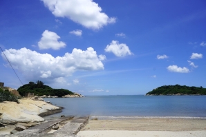 復國墩位於金門的東邊,岩岸在海浪拍打下歷經歲月的雕琢,延伸至無垠海面,與遠方天際相接。拍攝當下,微風...