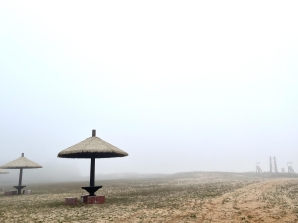 金門每年4至6月迎來霧季,海邊景色在濃霧籠罩下呈現出朦朧之美。在能見度約100公尺的環境裡,遠方景物...