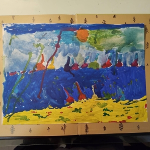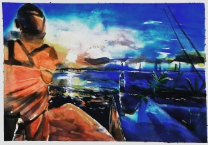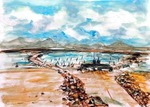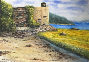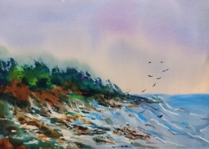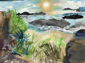 創作地點: 金門嚨口海灘 創作媒材: 水彩 紙材選用: 厚磅美術紙 技法特色:以水彩暈染手法表...