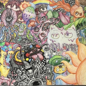 我的作品呈現五彩繽紛的元素代表自然的多樣性與生命的奇蹟,同時融入當前環境保護的議題,如生態系統的破壞...