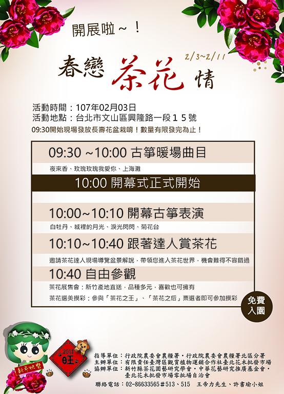 春戀茶花情 開展拉!!!!! 活動詳細資訊粉絲專頁:臺北花木批發市場
