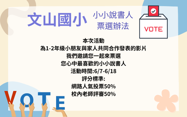 活動結束後,於文山國小粉絲團及活動網頁公布票選結果。